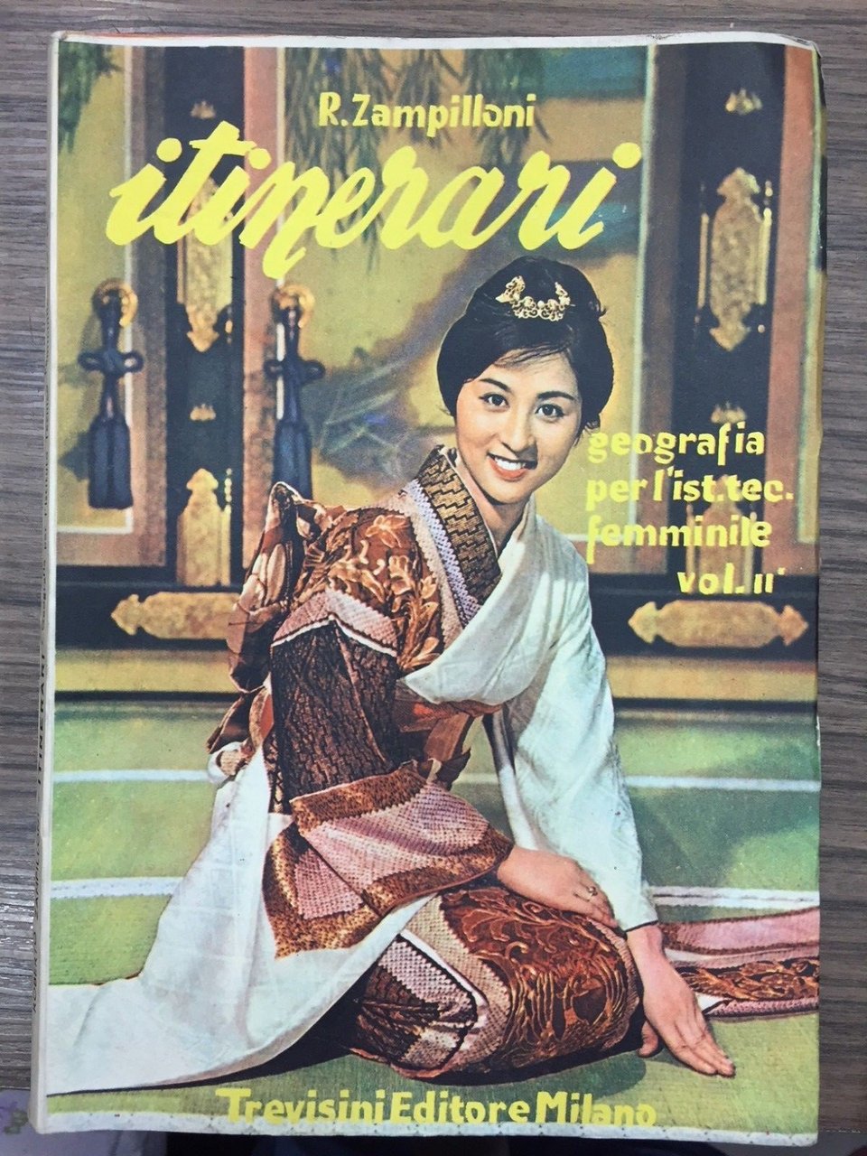 Corso di Geografia per gli Istituti tecnici femminili secondo i nuovi programmi. Milano. Trevisini 1963, 8°, pp. 303. Bross. Edit. Ill. a colori. Segni del tempo tracce d'umido.