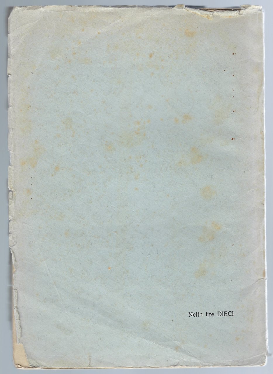 Brossura editoriale che presenta alla coperta piccoli strappi, pieghe, fioriture e macchie (come da foto).