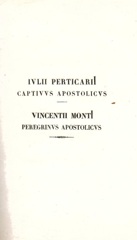 Iulii Perticarii Captivus Apostolicus - Vincentii Monti Peregrinus Apostolicus