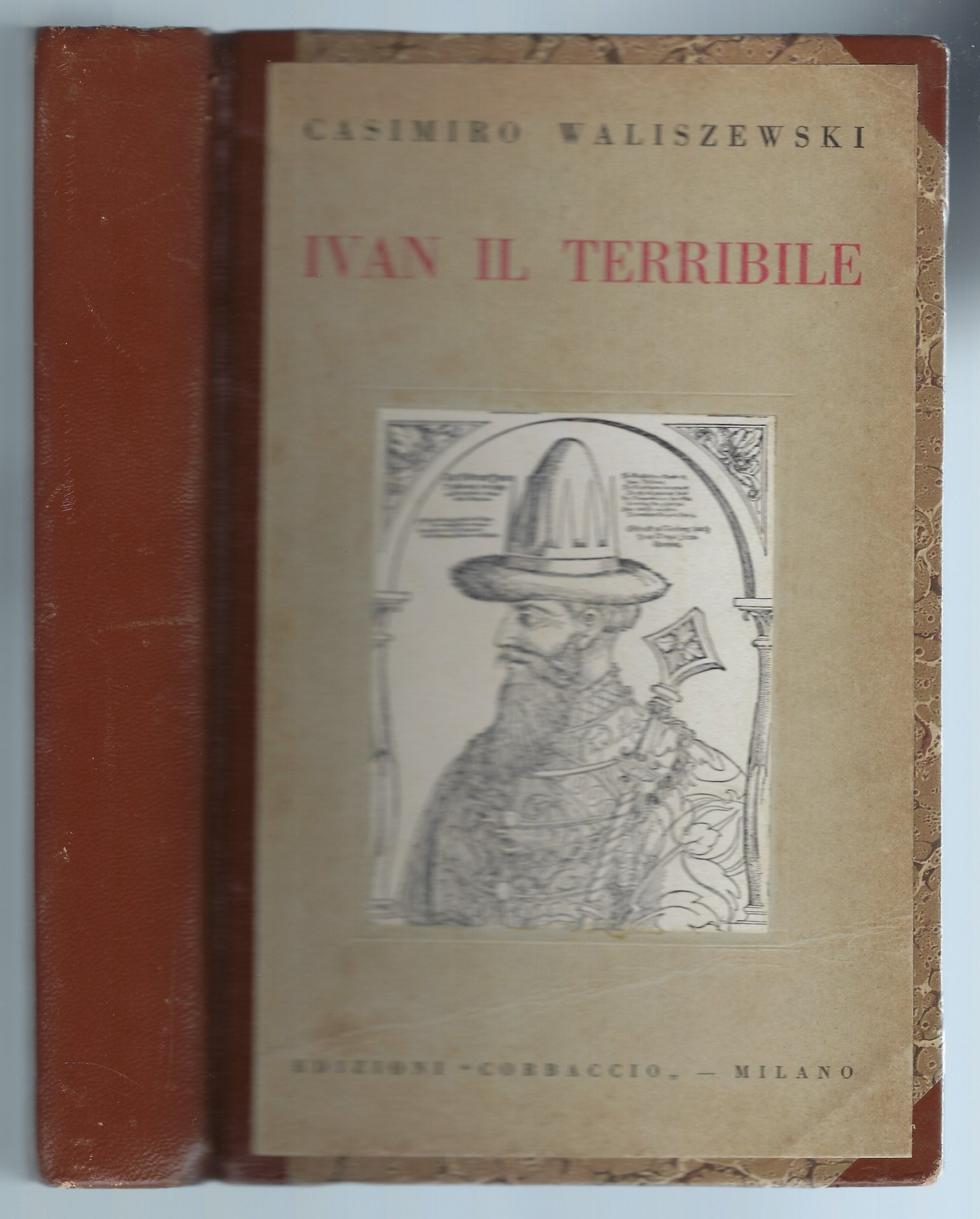 Legatura artigianale in mezza pelle con titoli ed illustrazione al piatto anteriore.