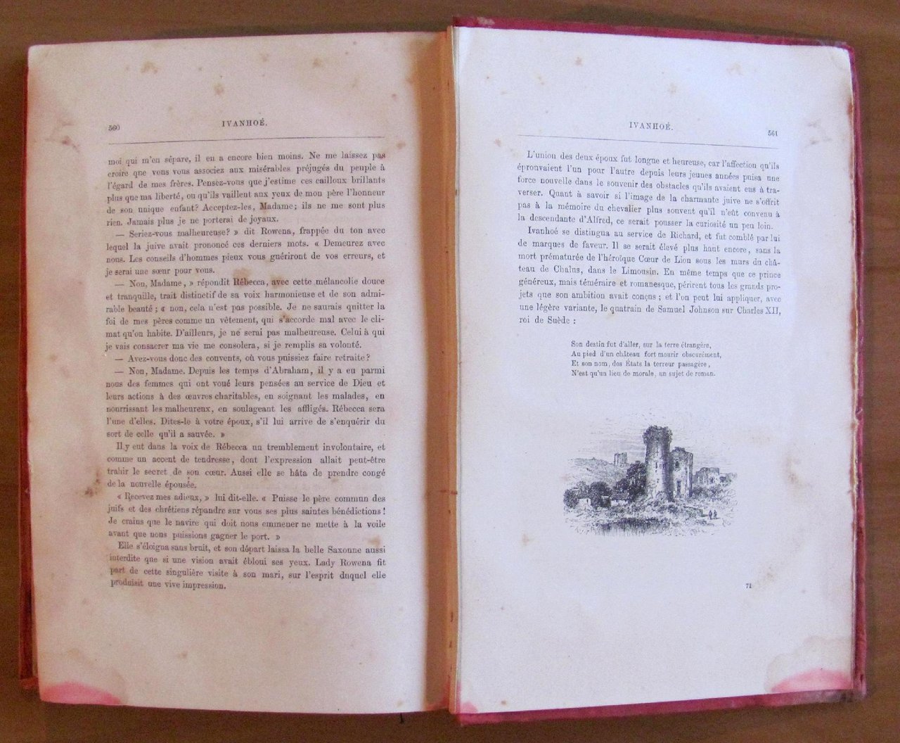 Traduction de M. P. Louisy. Moltissime illustrazioni in b/n n.t. e 10 tavole, sempre in b/n f.t., di cui una in antiporta protetta da velina,di MM. Lix, Adrien Marie, Riou et H. Scott. Librairie de Firmin Didot et Cie - Paris, 1880. Tela editoriale rossa con fregi e titoli in oro e nero al piatto e al dorso e tagli dorati alle pagine. Traccia e scoloritura di vecchia gora al margine esterno delle copertine, di cui l'anteriore riporta un restauro in tela al taglio esterno, leggermente passante anche al margine esterno delle ultime pagine che non ne lede però ne' il testo ne' le illustrazioni. Minime, sporadiche fioriture del tempo a poche pagine. 19x27,5; pp.568. Buonissimo stato. , Molto buono (Very Good)