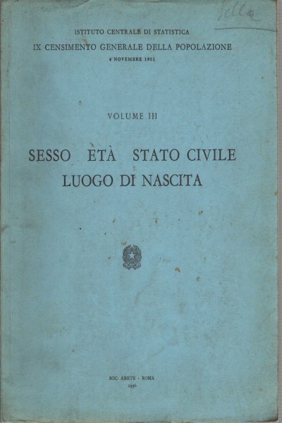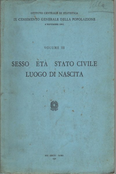 IX Censimento Generale della Popolazione, volume III: Sesso Età Stato civile Luogo di nascita