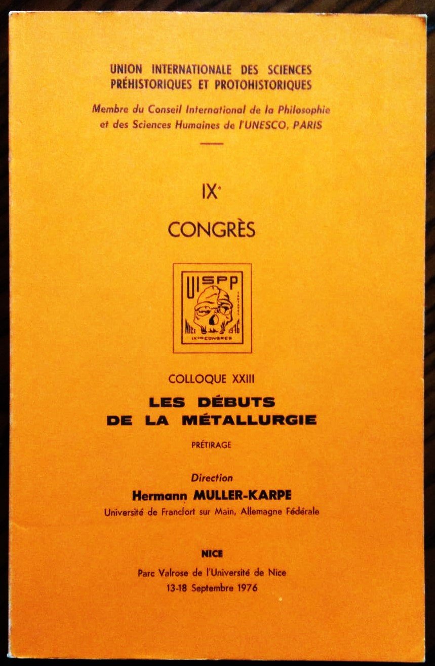 IX Congres UISPP. Colloque XXIII. Les débuts de la metallurgie. Pretirage. direction Hermann Muller-Karpe. Nice 13-18 Septembre, 1976.
