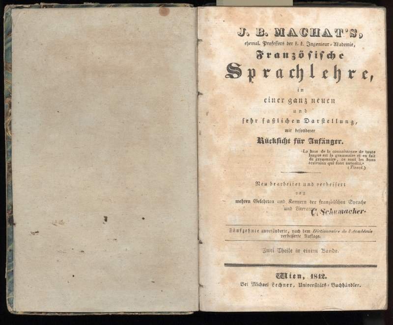 J.B. MACHAT'S FRANZOSISCHE SPRACHLEHRE, in einer ganz neuen und sehr fasslichen Darstellung mit besonderer Rucksicht fur