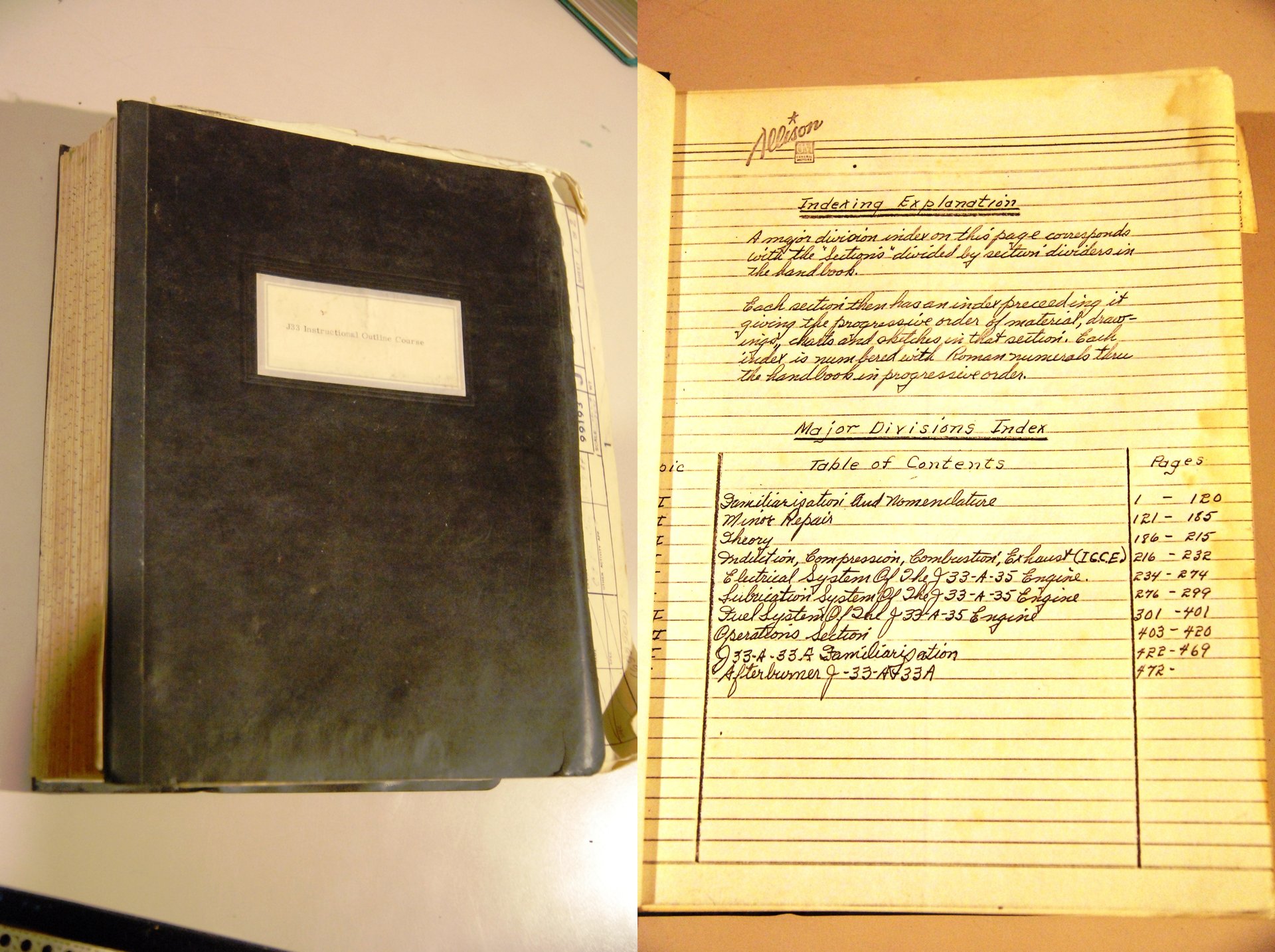allison technical school j33 instructional outline course indexing explanation major divsions index j33-a-35 e j33-a-33a engine. indianapolis general motors .