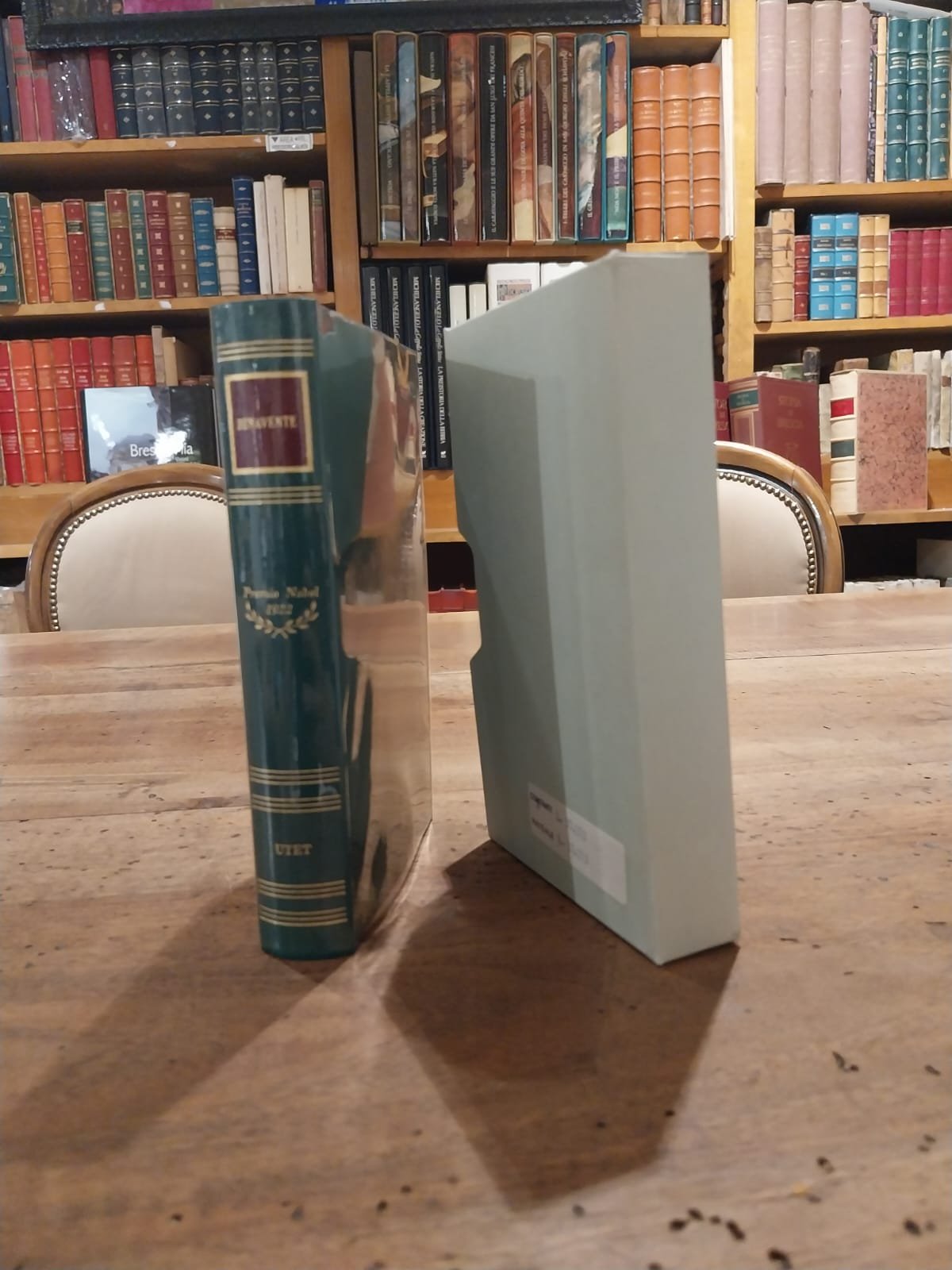 Volume della collezione UTET 1965 SCRITTORI DEL MONDO: I NOBEL. raccoglie le opere : IL NIDO ALTRUI; IL PASTO DELLE BELVE; VOLGARITà ; LA NOTTE DEL SABATO; ROSE D'AUTUNNO; GLI INTERESSI CREATI ; SIGNORA PADRONA; LA MAL-AMATA. Ritratto di Jacinto Benavente in antiporta .Il libro è rivestito da una protezione in plastica ed è accompagnato dall'apposito cofanetto. Legatura in similpelle, con titolo in oro al dorso, in tassello rosso.