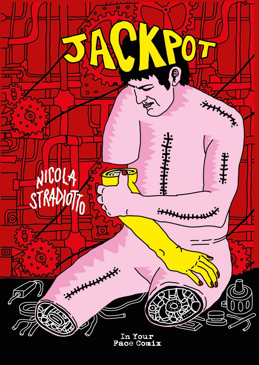 Jackpot di Nicola Stradiotto è una raccolta di dieci storie brevi a fumetti, inedite e non, tra il grottesco e il surreale. Storie di morte, laboratori clandestini e violenza. Scheletri umani che vivono e surfano tra la spazzatura nucleare, corpi smembrati e riassemblati. Tra le varie storie, troverete anche un omaggio a Earl Foureyes, personaggio creato dal maestro Stefano Zattera.