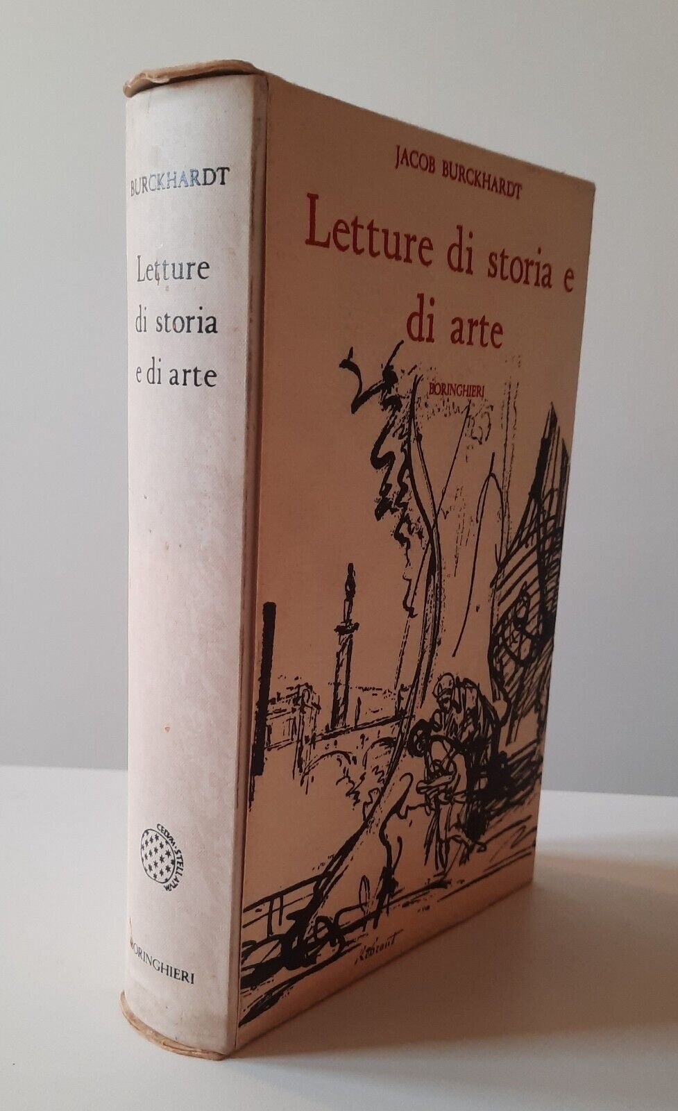 JACOB BURCKHARDT LETTURE DI STORIA E DI ARTE BORINGHIERI 1962 In 8°, pag. 641, legatura editoriale, custodia illustrata, copertina telata.Lievissimi segni alla custodia.