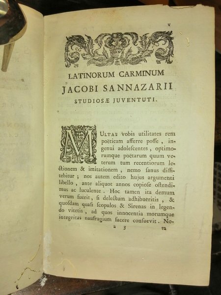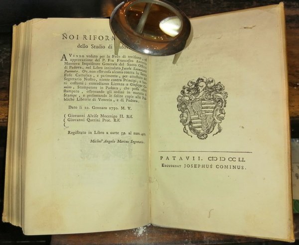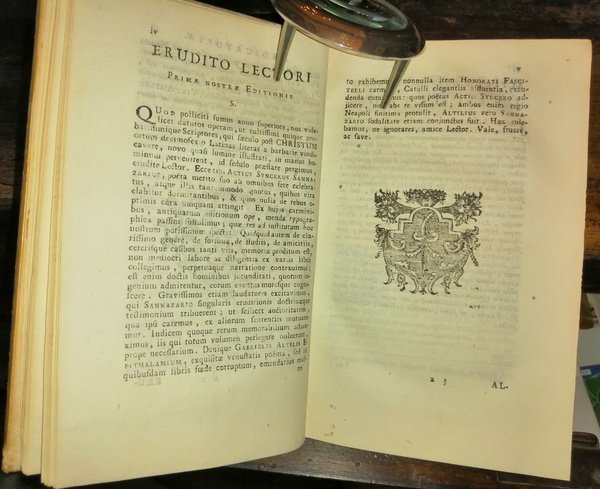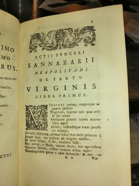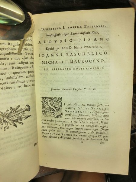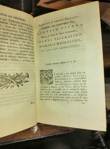 In-8 (18,5 cm) (1) c. (ritratto, ripiegato, in antiporta) XXIV LXXX 212 141 (1).Piena pergamena con tassello al dorso. Piccoli fori di tarlo alle prime e ultime pagine. Volpi Giovanni Antonio (1686-1766) letterato ed editore padovano. Insegnò dapprima filosofia, poi lettere greche e latine all'università di Padova. Dal 1717 al 1736, insieme col fratello Gaetano, diresse a Padova la tipografia Volpi-Cominiana. Ottimo esemplare.In-8 (18,5 cm) (1) c. (portrait, folded, in the front door) XXIV LXXX 212 141 (1). Full parchment with gusset on the spine. Small woodworm holes on the first and last pages. Volpi Giovanni Antonio (1686-1766) writer and publisher from Padua. He first taught philosophy, then Greek and Latin letters at the University of Padua. From 1717 to 1736, together with his brother Gaetano, he directed the Volpi-Cominiana printing house in Padua. Excellent copy.