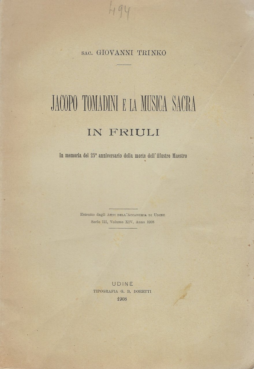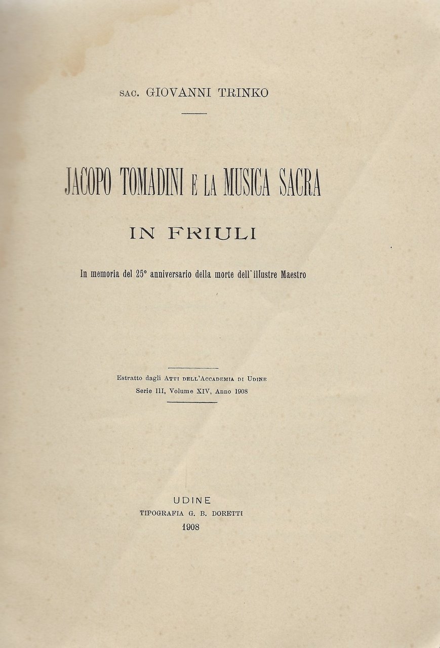 Estratto dagli Atti Dell'Accademia di Udine, Serie III, Volume XIV, Anno 1908.