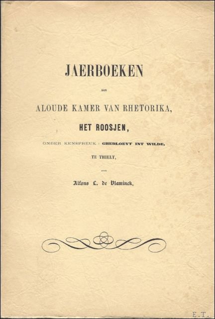 JAERBOEKEN DER ALOUDE KAMER VAN RHETORIKA, HET ROOSJEN, ONDER KENSPEUK: GHEBLOEYT INT WILDE, TE THIELT.