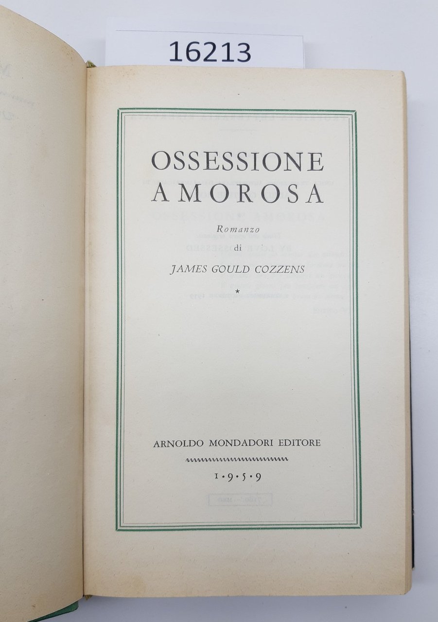 James Gould Cozzens Ossessione Amorosa Mondadori 1959 1° ed.
