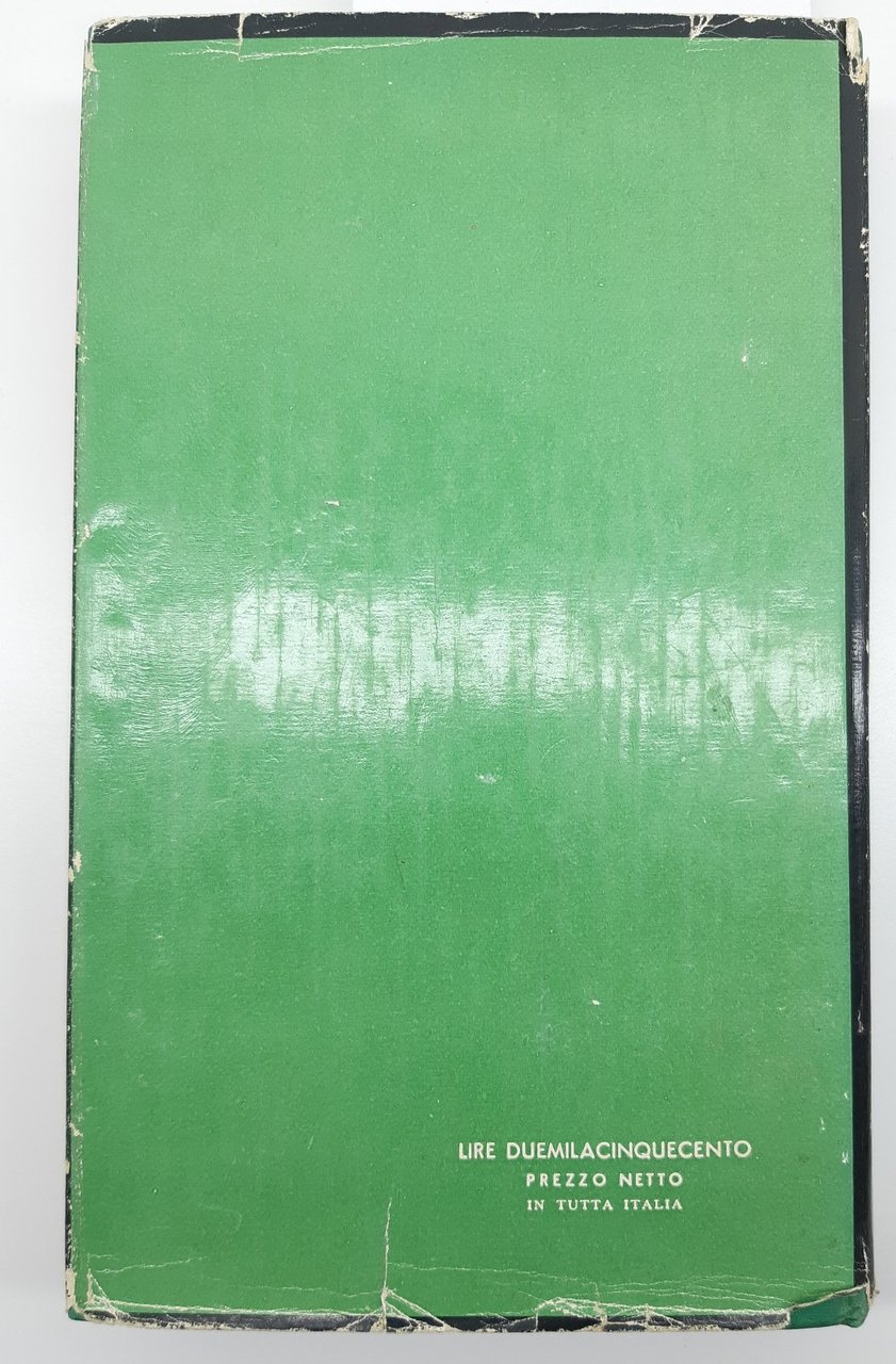 Sovraccoperta editoriale con due strappi di qualche centimetro sia al margine superiore che Inferiore del piatto anteriore, uno strappo al margine inferiore alla quarta di copertina, alcune abrasioni in corrispondenza del dorso, copertina rigida editoriale lievi ammaccature alle cuffie, tagli ingialliti con fioriture, interno in buono stato devi aloni di copertina, numero pagine 697 cm 19,5 x 12 odore di chiuso
