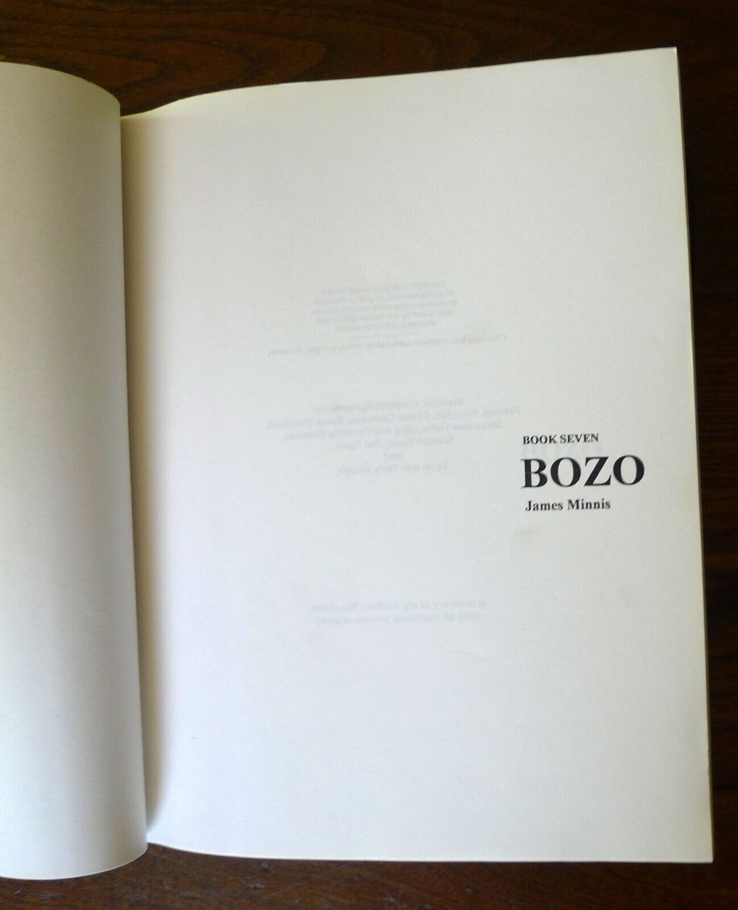 James Minnis,BOOK SEVEN.BOZO.stampato in proprio, 1994,(originally published by Arting, Cologne, Germany)acetato trasparente, rilegatura in plastica,24x18,5 cm., pp.90 non numerate,testo in inglese,peso: g.250