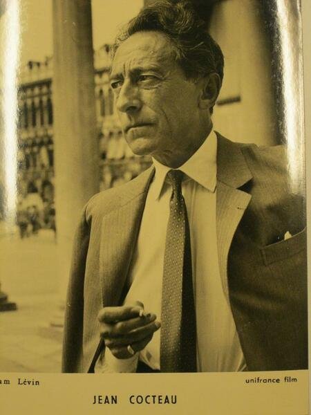 Silver print cm 13 x 18. Stampa vintage. 1965 ca. Nella parte inferiore della fotografia, a stampa: Sam Levine, Jean Cocteau, Unifrance film. Fotografia originale pubblicitaria edita dalla Unifrance film, struttura finalizzata alla promozione del film francese. Levine e' stato fotografo di moda ma anche fotografo di scena per grandi registi come Rene' Clair e Jean Cocteau e ritrattista del migliore cinema europeo.