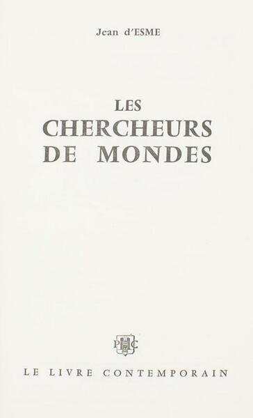Autore: Jean d'Esme Titolo: Les chercheurs de mondes Edizione: Le Livre contemporain Dimensioni: 21,5x13,5 cm Pagine: 221 Copertina: Rigida Condizioni: Buone come da foto