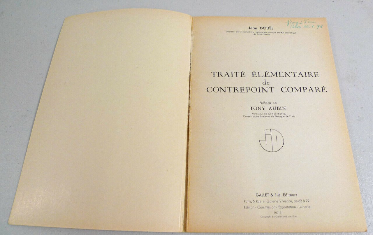 Jean Douël,TRAITÉ ÉLÉMENTAIRE DE CONTREPOINT COMPARÉ,1954 Gallet[musicologia