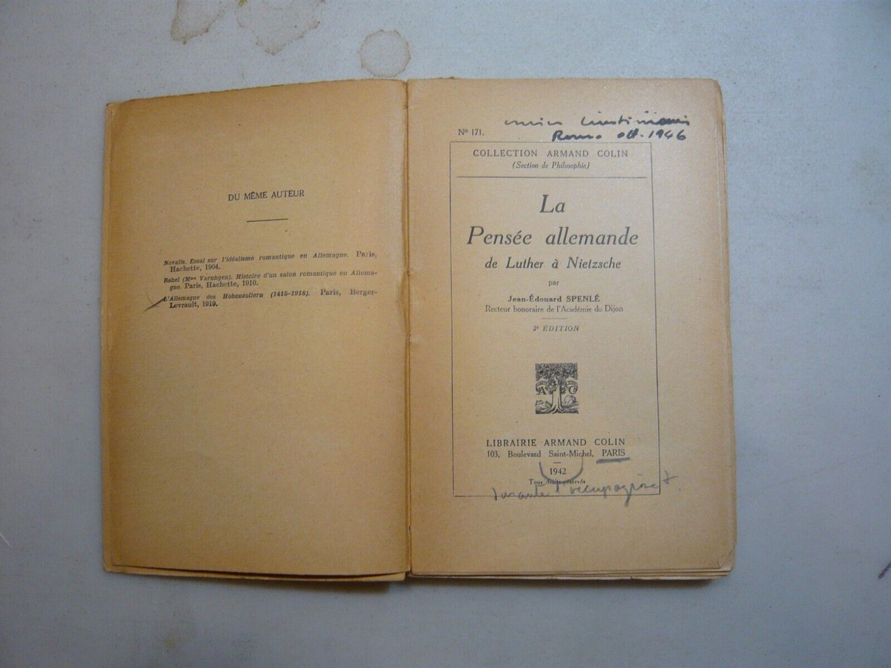 Jean-Edouard Spenlé,LA PENSEE ALLEMANDE.Da Luther à Nietzsche,Armand Colin,1942