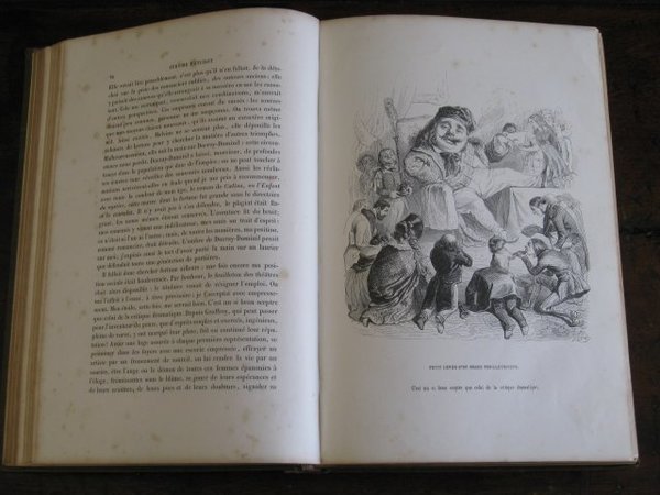 Paris, J.-J. Dubochet, Le Chevalier et Cie Éditeurs, 1846. In -8, pp. 460, con numerose illustrazioni di Grandville (1 al frontespizio, 32 fuori testo e 200 fregi, finalini e ornamenti incisi su legno nel testo). Legatura in piena percallina nera, con stemma dorato e policromo, in cornice con sette filetti dorati al piatto anteriore e posteriore. Dorso a 4 nervi, con fregi dorati e titolo impresso in oro. Tagli dorati. Leggere fioriture, ma nel complesso esemplare più che buono. Edizione originale. Un classico della satira politica e di costume.