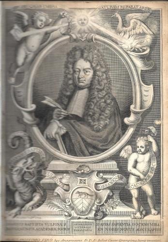 in 4°, pp. 20 nn. 458, 8 nn.; 47, 1 b., 4 di Index, 1 di Errata corrige; leg. coeva p/perg., ds. a nervi con tit. e fregi in oro, tagli spruzz., grande antip. col ritratto dell'A. inciso in ovale contornato da animali mitologici e putti, vignette ai 2 front., alcuni grandi capil. e finalini. Considerato uno dei più brillanti ingegni del suo tempo dalla Società degli Spensierati, il Volpino fu tra i primi ad intuire l'importanza della biochimica nella cura delle malattie; non esitava a dichiararsi contrario alla medicina galenica ed alla pratica dei salassi, se questi principi contrastavano con l'evidenza clinica, affermando e spiegando le basi chimiche della vita; aperto ad idee innovatrici, comprese l'importanza del complesso psichico-emotivo sull'origine delle malattie; la presente opera è un trattato di patologia, clinica medica e fisiologia. Lievi fior., piccola macchia rossa al piatto. Raro. 480/28