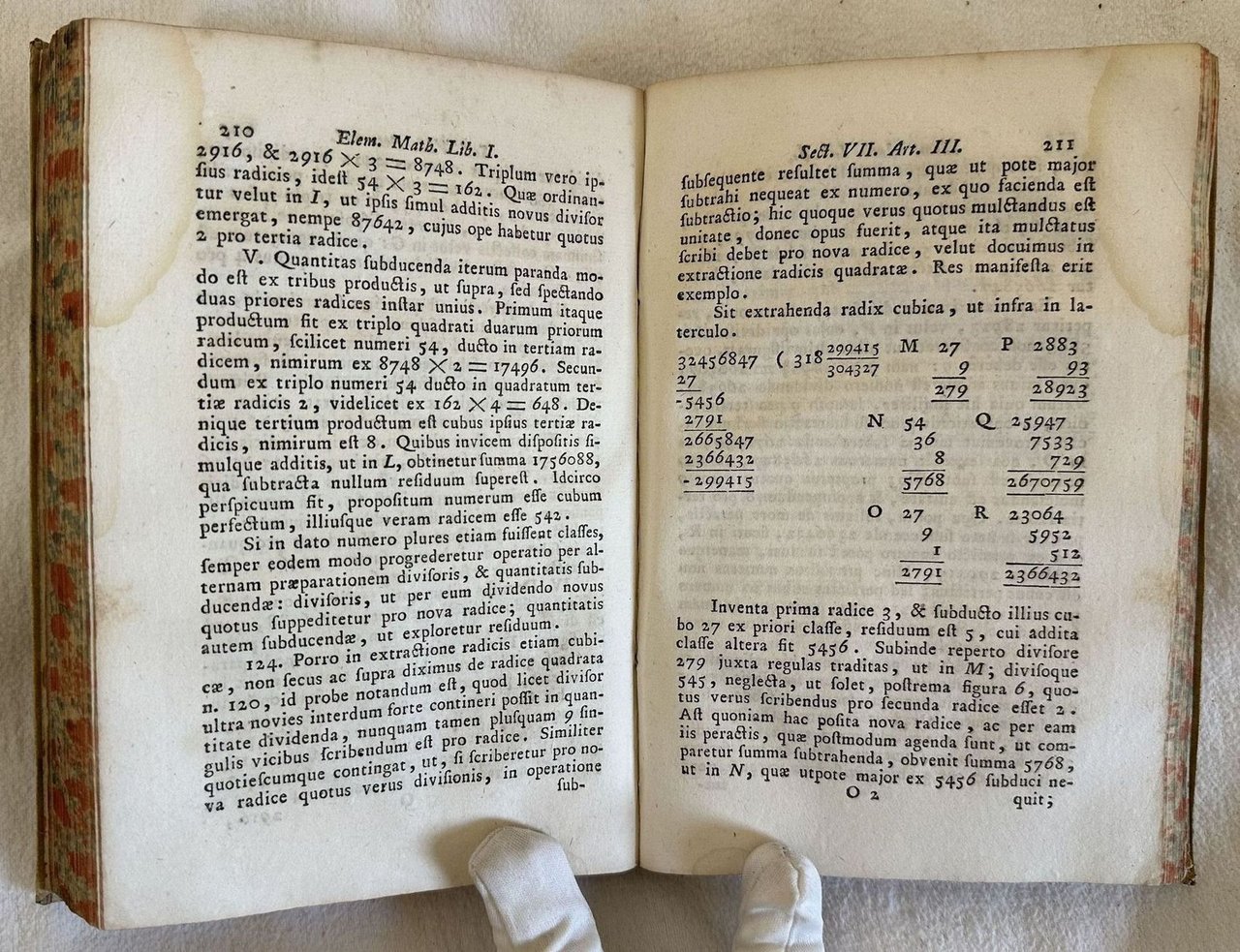 Edizione del 1771-77 di questa opera filosofica di Carlo Giuseppe di San Floriano seguace della filosofia di Johann Duns Scoto. L'opera era formata da 7 tomi siamo in possesso solo del terzo sull'aritmetica. All'interno: note di aritmetica, arabi, numeri romani, numeri greci, numeri ebrei, algebra, proporzini, addizione, numeri decimali, geomnetria, cronologica, astronomica, geografia, sottrazioni, moltiplicazioni, divisione del numero, estrazione della radice, calcolo della frazione, operazioni , frazioni, regola aurea, proporionalità geometrica, proporzionalità aritmetica, proporzionalita armonica ecc. Tagli marmorizzati. In buone condizioni. Copertina in piena pergamena con titolo manoscritto al dorso in buone condizioni generali con lievi usure marginali. Legatura in buone condizioni. Pagine in buone condizioni con fioriture. Alcune lievi gore d'umidità marginali. In 8. Dim. 19x13 cm. Pp. XV+(1)+394+(1).Edition of 1771-77 of this phylosophical work by Carlo Giuseppe di San Floriano follower of the phylosophy by Johann Duns Scoto. The work was made up of seven tomes, we only have the third tome about arythmetics. Inside: note di aritmetica, arabi, numeri romani, numeri greci, numeri ebrei, algebra, proporzini, addizione, numeri decimali, geomnetria, cronologica, astronomica, geografia, sottrazioni, moltiplicazioni, divisione del numero, estrazione della radice, calcolo della frazione, operazioni , frazioni, regola aurea, proporionalità geometrica, proporzionalità aritmetica, proporzionalita armonica ecc. Marbled fore-edges. In good conditions. Full parchment coeval with handwritten title in the spine in good general conditions lightly worn in the extremities. Binding in good conditions. Inside pages are in good conditions with foxing. Some dump stains in the extremities.In 8. Dim. 19x13 cm. Pp. XV+(1)+394+(1).