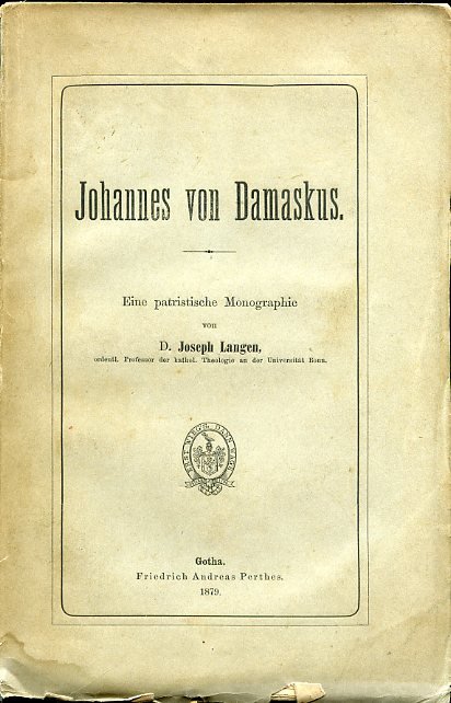 In-8°, pp. VIII, 312, (12) di catalogo editoriale, brossura originale a stampa protetta da velina. Perfetto esemplare in barbe. Unica edizione di questa monografia di storia patristica su San Giovanni Damasceno, il grande presbitero e teologo siriano vissuto tra il VII e l'VIII secolo soprannominato 'il San Tommaso dell'Oriente'.
