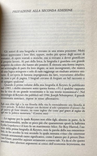 Soggetti: John Maynard Keynes, Biografie, Memorie, Economisti britannici, Economia politica keynesiana, Diari, Vita privata, Bibliografia, Opere generali, Scritti economici, Teorie economiche keynesiane, Filosofia, Ottocento, Novecento, Foto d'epoca, Libri Vintage Fuori catalogo, Libri illustrati, Biografia, Pensiero economico, Storia, Pensatori, Sistema economico, Ideologie politiche, Lavoro, Socialismo, Comunismo, Marxismo, Personaggi illustri, Diritti sociali, Teoria economica, Omosessualità, Gold standard, Inflazione monetaria, Studi keynesiani, Sir Roy Harrod, Lytton Strachey, Michael Holroyd, Duncan Grant, Vanessa Bell, Virginia Woolf, Angelica Bell, Clive Bell, Relazioni aperte, Gruppo di Bloomsbury, Famiglia, Scuole di pensiero economico, Keynesianismo, The Economist as Savior, 1920–1937, Eton College, Conferenza di Bretton Woods, Friedrich von Hayek, Georg Friedrich Knapp, Franklin Delano Roosevelt, Liberalismo, Stati Uniti d'America, Moneta, Teoria austriaca del ciclo economico, Spiriti animali, Cicli economici, Indian Currency and Finance, Le conseguenze economiche della pace, The Economic Consequences of the Peace, Treatise on Probability, Riforma Monetaria, Winston Churchill, Teoria generale dell'occupazione, dell'interesse e della moneta, The General Theory of Employment, Interest and Money, Liberismo, Critica, Laissez-faire, Adam Smith, Libero mercato, Il Capitale, Marx, Piero Sraffa, Economisti classici, Mano invisibile, Equilibrio, Occupazione , Redistribuzione della ricchezza, Alfred Marshall, Arthur Cecil Pigou, Cambridge, Speculazione, Crisi del 1929, Bisessuale, Ballerina russa, Lidija Lopuchova, John Strachey, Crollo di Wall Street, Isaac Newton, Collezionismo, Bibliofilia, Collezionista d'arte, Filantropia, Capitalismo, Intervento pubblico statale, Milton Friedman, von Mises, Rivoluzione, Macroeconomia, Eugenetica, Sistema capitalista, Pace di Versailles, Prima Guerra Mondiale, Treasury, Lloyd George, Strachey, Neville, Balance, Bank, Lettere, Epistolario, Corrispondenza, Henry Sidgwick, G.E. Moore, Bertrand Russell, F.M. Forster, Leonard Woolf, Pittura, Pittori, Picasso, Cezanne, Eton, Illustrazioni, Schumpeter, Allievi, Politica monetaria, Carl Melchior, Hughes, Klotz, Austria, Clemenceau, Wilson, Pigou, Lytton, Pippa, Arthur Lee Hobhouse, Ritratti, Francis Birrell, McKenna, Chamberlain, Prestito americano, Società degli apostoli, Sheppard, Etica, Industria, Teoria quantitativa, Amicizie, Probabilità, 1883-1946, Biographies, Memories, British Economists, Keynesian Political Economy, Diaries, Private Life, Bibliography, General Works, Economic Writings, Keynesian Economic Theories, Philosophy, Nineteenth Century, Twentieth Century, Period Photos, Out of Print Books, Illustrated Books, Biography, Economic Thought, History, Thinkers, Economic system, Political ideologies, Work, Socialism, Communism, Marxism, Famous people, Social rights, Economic theory, Homosexuality, Monetary inflation, Keynesian studies, Open relationships, Group, Family, Schools of economic thought, Keynesianism, Liberalism, United States, Currency, Austrian business cycle theory, Animal spirits, Economic cycles, Indian Monetary Reform, Liberalism, Criticism, Free market, Capital, Classical economists, Invisible hand, Balance, Employment, Wealth redistribution, Speculation, Crisis, Bisexual, Russian dancer, Collapse, Collectibles, Bibliophilia, Art collector, Philanthropy, Capitalism, Inter state public wind, Revolution, Macroeconomics, Eugenics, Capitalist system, Peace, World War I, Letters, Documents, Correspondence, Painting, Painters, Illustrations, Students, Monetary policy, Portraits, American loan, Society of apostles, Ethics, Industry, Theory quantitative, Friendships, Probability