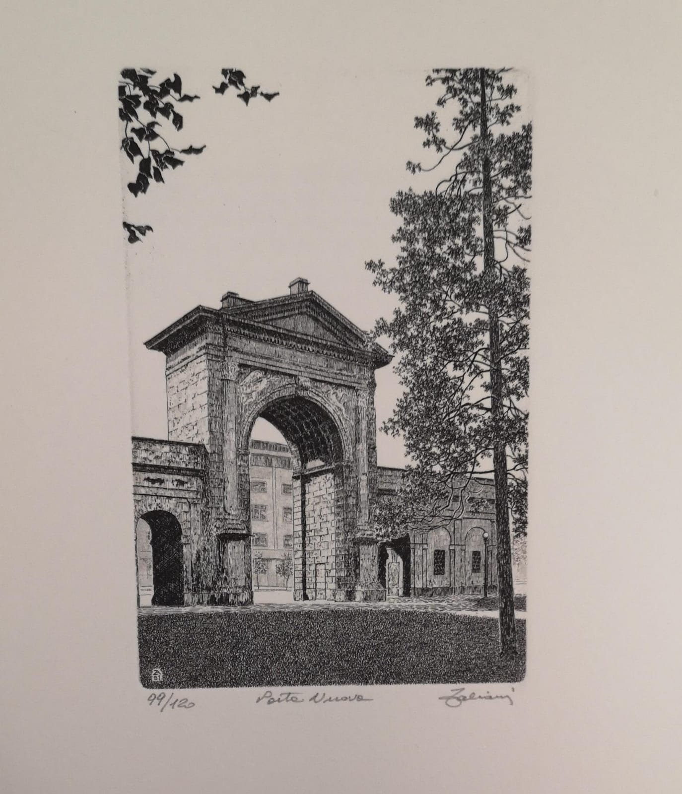 In-4 gr., brossura alla francese, custodia, pp. (6) di presentazione e 7 affascinanti acqueforti orig. (mm. 97x145), firmate da Agostino Zaliani e numerate, con vedute di Milano: ciascuna è introdotta da una annotazione di Stendhal, tratta dalla sua opera "Rome, Naples, Florence", 1816. Bella edizione tirata con torchio a mano in 120 esemplare numer. Il ns., 99, è in ottimo stato.
