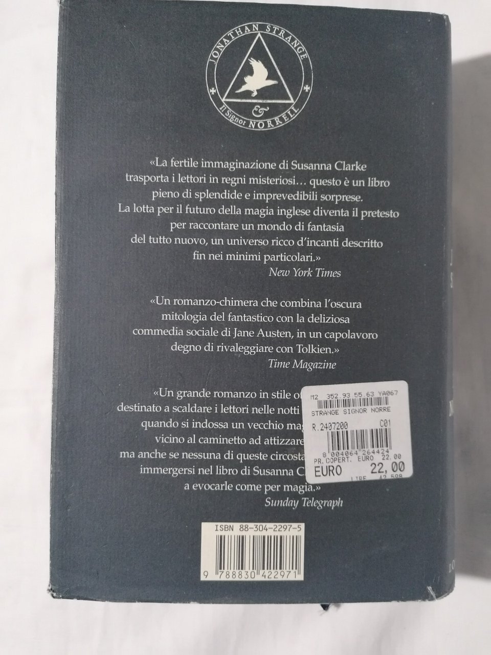 Editore: Longanesi Collana: La Gaja scienza Illustratore: Rosenberg P. Traduttore: Merla P. Data di Pubblicazione: 2005 EAN: 9788830422971 ISBN: 8830422975 Pagine: 887 Formato: rilegato Condizioni: buone 1H-13-1 Trama del libro All'inizio dell'Ottocento, della magia inglese rimangono quasi solo leggende come quella di Re Corvo, il grande mago capace di fondere la sapienza delle fate con la ragione umana. Ma dalle regioni del Nord un tempo visitate da elfi e folletti appare il signor Norrell, capace di far parlare le statue della cattedrale di York: la notizia sembra segnare il ritorno della magia in Inghilterra, e Norrell si trasferisce a Londra per offrire i suoi servizi magici al governo, impegnato nella guerra contro Napoleone. Ma una profezia parla di due maghi che faranno rinascere la magia inglese. Uno dei due maghi è Norrell. E l'altro chi è? Il romanzo è pubblicato in due versioni, con copertina bianca e con copertina nera.