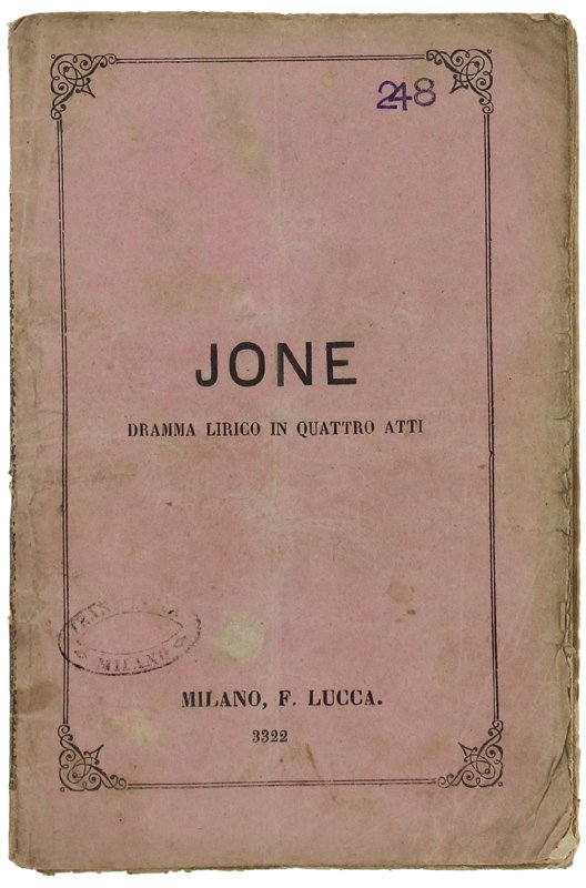 JONE. Dramma lirico in quattro atti di Giovanni Peruzzini. Musica di Errico Petrella.