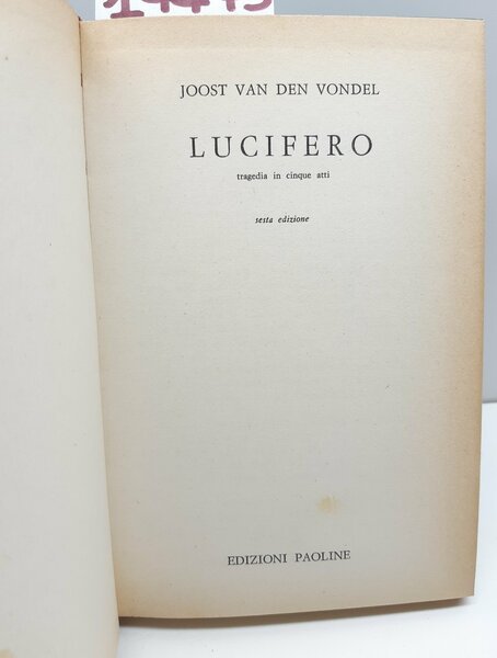 Joost Van Den Vondel Lucifero 6° ed. Paoline 1963