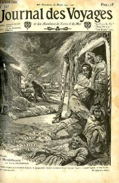 Journal des voyages et des aventures de terre et de mer n° 747 - 2e série - La peste en Mandchourie par André Charmelin, Les dix yeux d'or, IV par Paul d'Ivoi, Dickens en Amérique par A. Cromton, Tunis la ville arabe par Charles Géniaux, Le courrier
