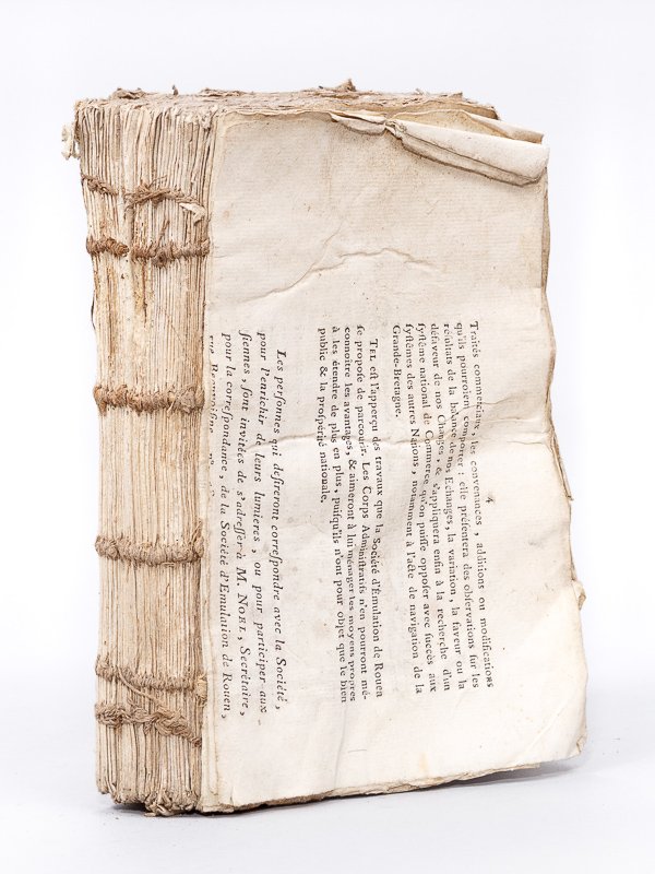 Recueil broché de 37 numéros sous couv. d'attente d'époque, De l'Imprimerie de la Dame Veuve Besongne, Rouen, puis s.n., 1792 : Journal du Commerce de Rouen, et des Cinq Départements Substitués à la Province de Normandie. N° 52 du 30 mars 1792, puis n° 2, 3, 4, du 4 au 9 avril 1792 [ Suivi de : ] Journal du Commerce, de Politique et de Littérature Françoise et Angloise, du N° 2 du 25 avril 1792 au n° 38 du 31 Mai 1792 [ sans les n° 14, 27, 28 et 29 ], de 8 à 16 pp. par numéro Rare réunion, non suivie, de 37 numéros, à savoir 4 du "Journal du Commerce de Rouen" et 29 du "Journal du Commerce, de Politique et de Littérature Françoise et Angloise", "servant de suite au Journal du Commerce de Rouen & au Mercure Anglais". Ce recueil intègre également quelques feuillets du n°10 du Journal du Commerce de Rouen et du n° 1 du "Journal du Commerce, de Politique.", le supplément au n°4 du "Journal du Commerce, de Politique.". Etat satisfaisant (sans couverture, des mouill. et frott.). Hatin, 230 ; Frère, II, 117
