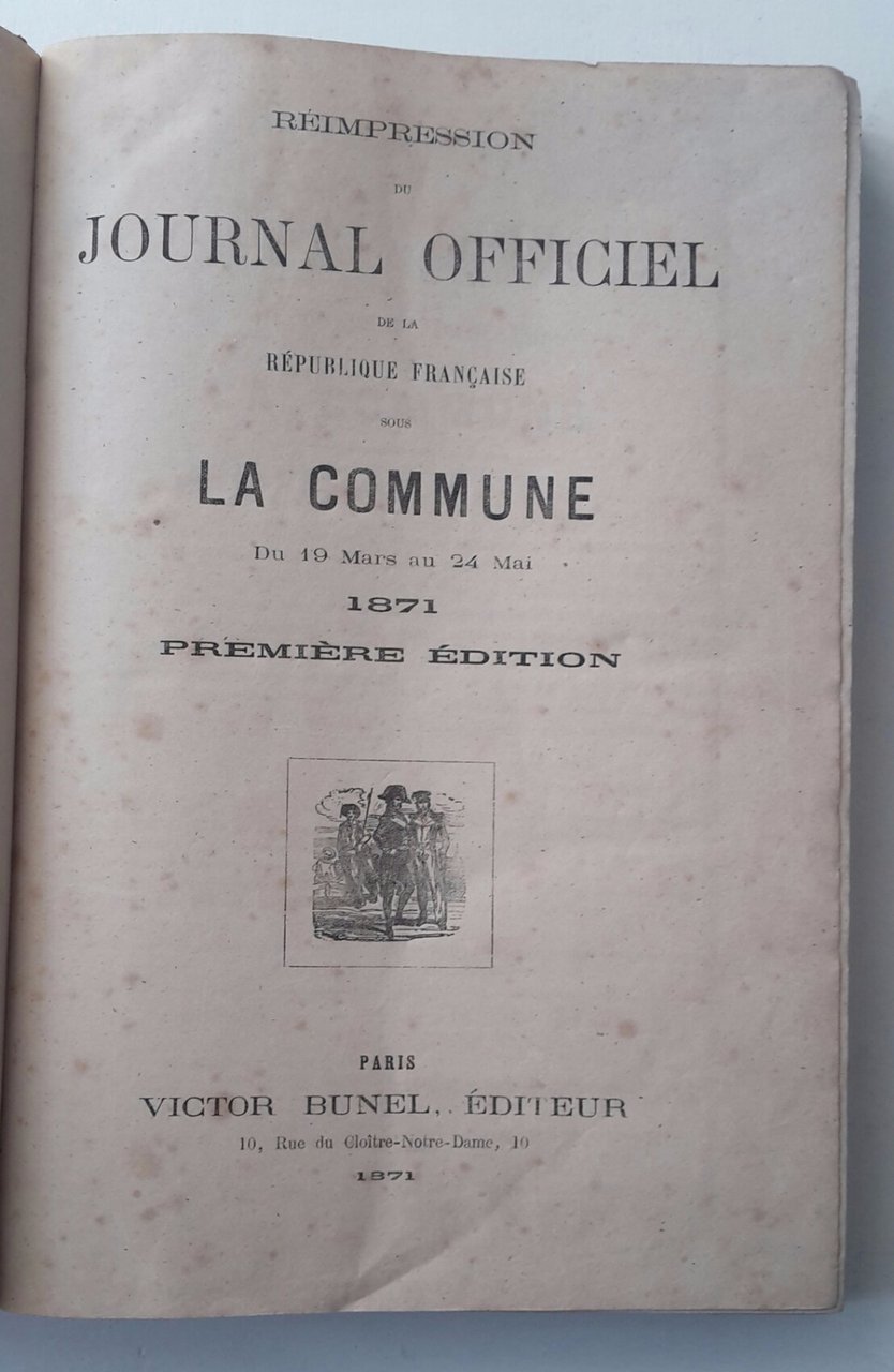 JOURNAL OFFICIEL SOUS LA COMMUNE DU 19 MARS AU 24 MAI 1871 V. BUNEL EDITEUR 1871