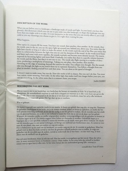 Judith Barry. On taking a normal situation an retranslating it into overlapping and multiple readings of conditions past and present