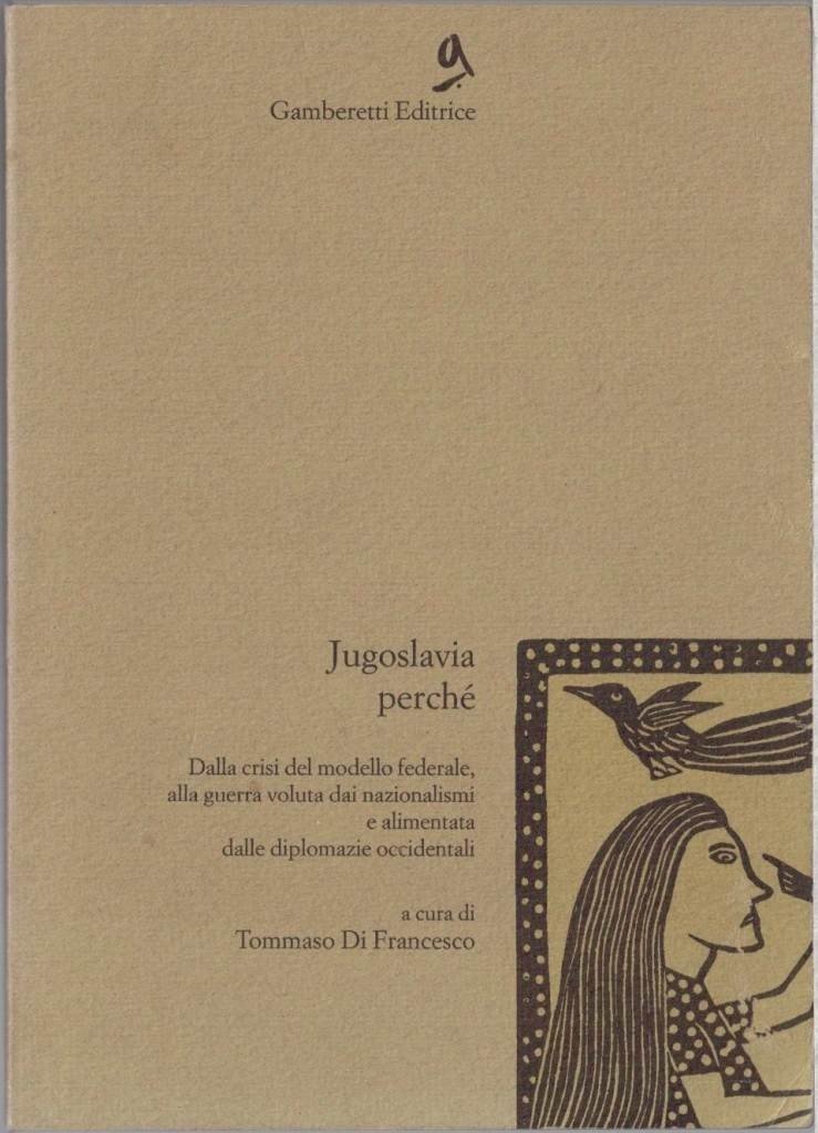 Jugoslavia perché. Dalla crisi del modello federale, alla guerra voluta dai nazionalismi e alimentata dalle diplomazie occidentali, a cura di Tommaso Di Francesco, Gamberetti Editrice, Roma 1995, prima ed., pp. 141, cm 17, ill. b.n., br. ed. Collana Gamberetti da tasca, vol. 1. Indice: Tommaso Di Francesco, Nota del curatore – Franco Fortini, La guerra in Europa – Stefano Bianchini, Il crollo della Jugoslavia: le fonti della sua instabilità interna – Peter Handke, Casa Slovenia – Paul-Marie De La Gorce, Visioni unilaterali: la costosa miopia della comunità internazionale – Costanzo Casucci, La dissoluzione della Jugoslavia: un crimine dell’Europa – Dino Frescobaldi, I pompieri incendiari della Jugoslavia – Emir Kusturika, Dai tetti di Sarajevo – Maurice Duverger, La fine della Bosnia e la responsabilità della comunità europea – Marco Dogo, Albanesi e slavi nella ristrutturazione geopolitica dei Balcani – Peter Glotz, La verità… un’arma – Note – Biografie. Minime tracce d’uso alla brossura, qualche sottolineatura a lapis alle prime tre carte di testo, per il resto ottimo.