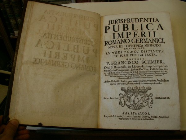 JURISPRUDENTIA PUBLICA IMPERII ROMANO GERMANICI nova et scientifica methodo concimmata in tres tomos distincta et juris publici facta. Adjuncto duplici Indice, quorum primus in principio prospectum operis, alter in fine seriem rerum & verborum.