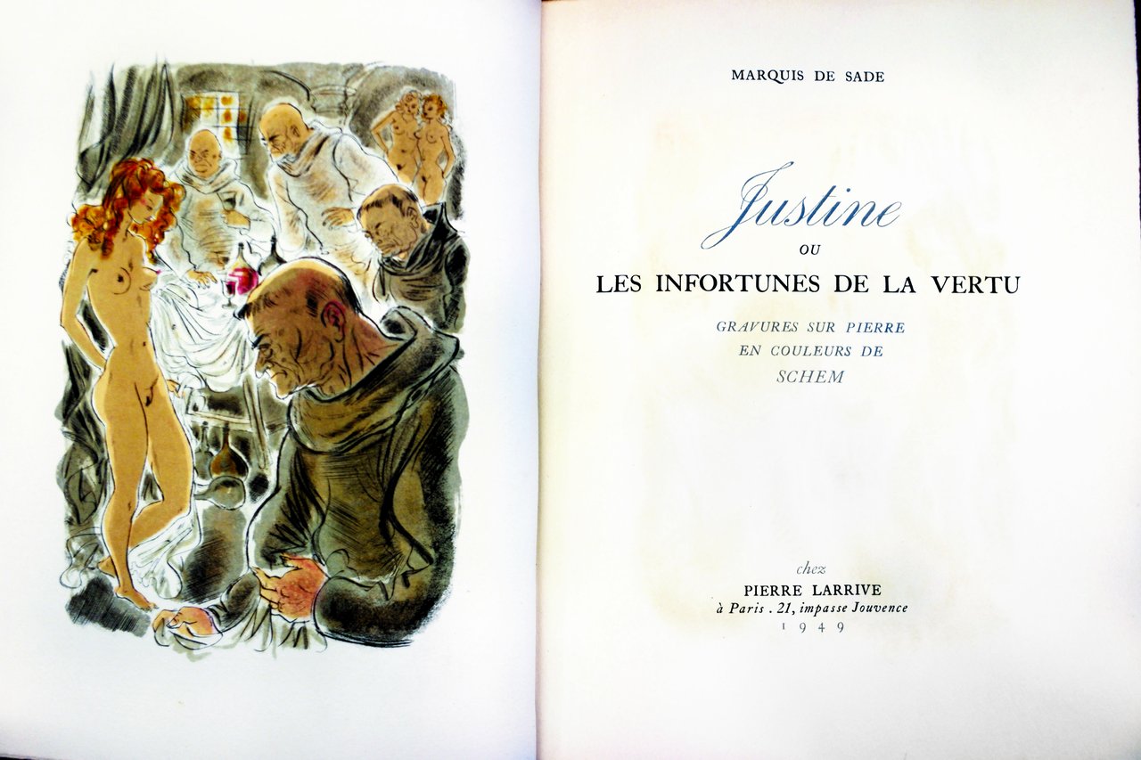 JUSTINE OU LES INFORTUNES DE LA VERTU. - Gravures sur pierre en couleurs de Schem.