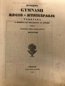 JUVENTUS GYMNASII REGIO MUNICIPALIS VICETINI E MORIBUS ET PROGRESSU IN LIERIS EEUNTE ANNO SCHOLASTICO MDCCCXLI
