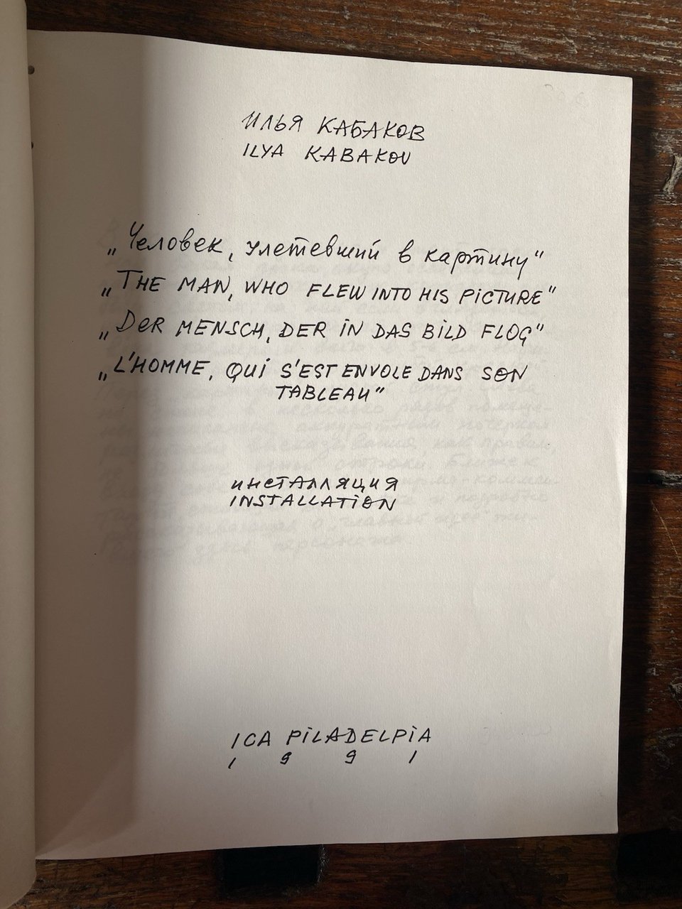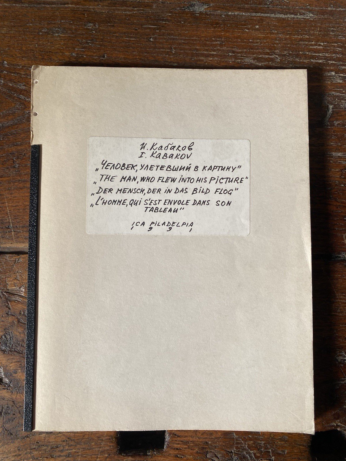 Pubblicazione di accompagnamento all'omonima installazione all'ICA di Philadelphia 148 fotocopie con numerose illustrazioni fascicolate con all'interno una tavola a colori ripiegata I° edizione Testo in Russo / Inglese / Tedesco / Francese Lievi tracce d'uso alla brossura Per il resto ottimo stato