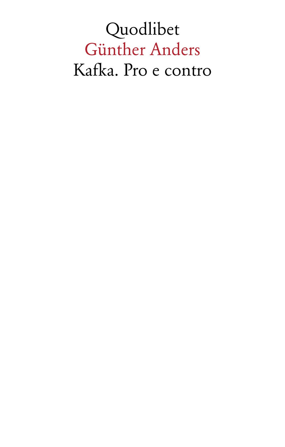Fin dal primo nucleo di questo libro, la conferenza Teologia senza Dio che Anders tenne da esule a Parigi nel 1934, la maggiore preoccupazione dell'autore è di mettere in guardia davanti al fenomeno Kafka, presentendo che questi (sconosciuto a tutti i convenuti, tranne Walter Benjamin e Hannah Arendt) era destinato a divenire uno dei paradigmi della letteratura e dell'immaginario del Novecento, e che quindi sarebbe ben presto sfuggito alla ridotta gittata delle armi tradizionali della critica letteraria. E in effetti, già alla sua uscita nel 1951, Kafka. Pro e contro appare come un atto di lesa maestà, e lo stesso Max Brod, responsabile materiale della trasmissione ai posteri di buona parte dell'opera kafkiana, lo critica aspramente, provocando una polemica che qui per la prima volta è accessibile al lettore italiano. Anders è consapevole dell'incriticabilità del suo obiettivo: «Già Kierkegaard ha formulato in modo definitivo che la domanda: “Cosa è inderogabile in uno scrittore?” sembra essere scorretta, contro la pienezza del talento o della genialità. Ebbene appare scorretta perché è seria. Nel mio saggio, mi sono addossato l'onta di questa scorrettezza.»