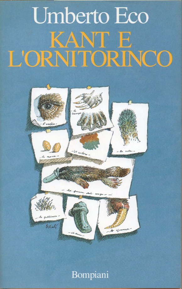In-8° (21,3 x 13,4 cm), pp. XVI, 454, (16), copertina editoriale con sovraccoperta illustrata a colori. Qualche piccolissimo, lievissimo segno d'umido al taglio di testa. Normale patina del tempo alle pagine, con leggere arrossature dovute al tipo di carta. Per il resto, molto ben conservato, in ottimo stato. Nella collezione "Studi Bompiani", sezione "Il campo semiotico", a cura di Umberto Eco. Prima edizione, ottobre 1997. Indice: Introduzione. 1. Sull'essere. 2. Kant, Peirce e l'ornitorinco. 3. Tipi cognitivi e contenuto nucleare. 4. L'ornitorinco tra dizionario e enciclopedia. 5. Note sul riferimento come contratto. 6. Iconismo e ipoicone. Appendice 1. Sulla denotazione. Appendice 2. Croce, l'intuizione e il guazzabuglio. Note ai capitoli. Riferimenti bibliografici. Indice degli autori citati.