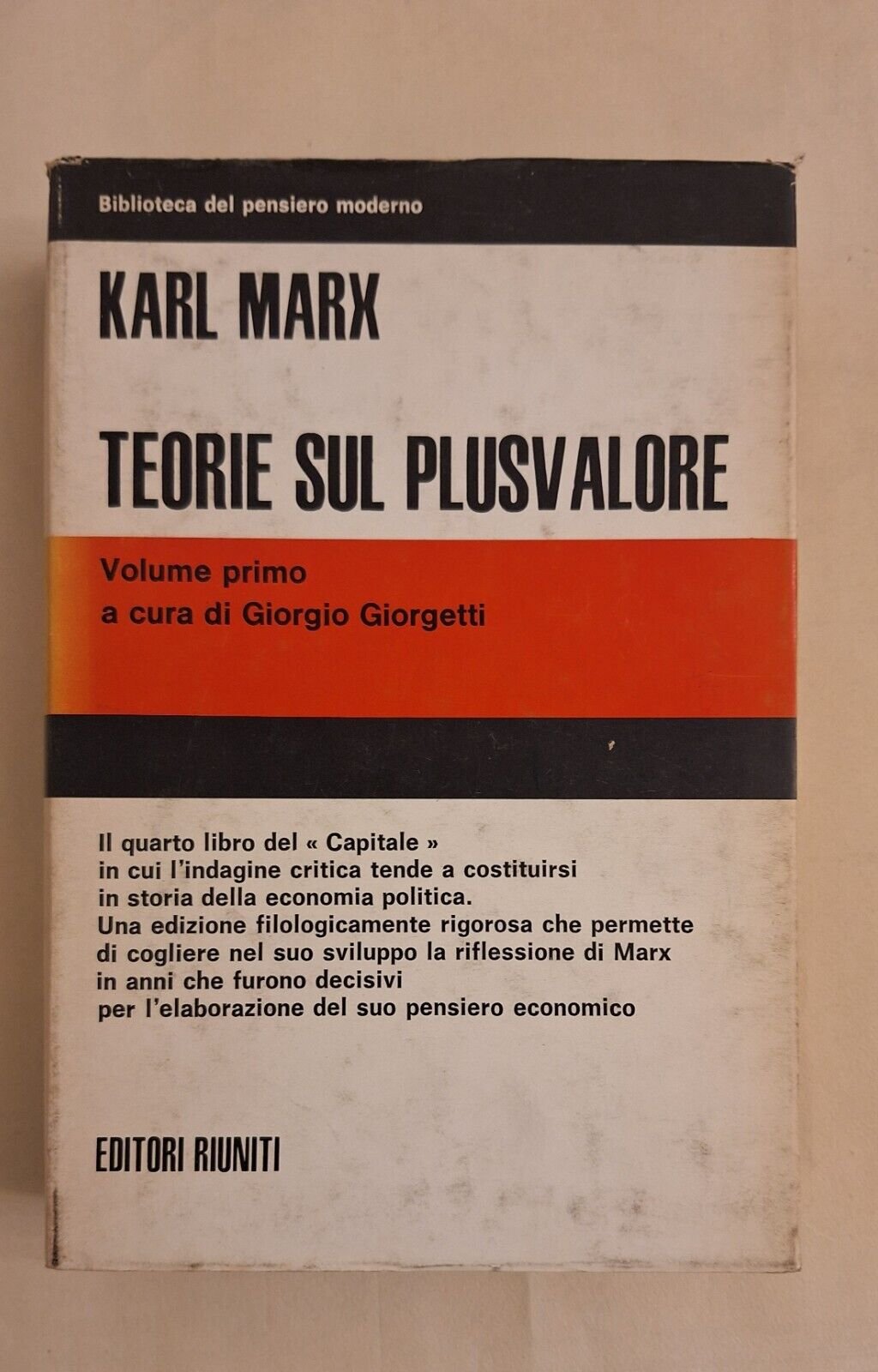 KARL MARX TEORIE SUL PLUSVALORE EDITORI RIUNITI 1968In 8° , legatura editoriale, sovracopertina illustrata.Lievissimi segni alla sovracopertina.