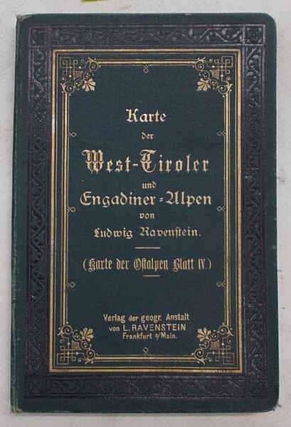 Carta geografica a pieni colori, in scala 1:250.000 montata su tela a riquadri all'origine e ripiegata nella bella copertina originale in tela verde con titoli e fregi impressi in oro e in nero. Ottimo esemplare. VG. ** Chiavenna, St.Moritz, Disgrazia, Bernina, Bormio, Ortler, Bolzano, Merano, Brennero. e al margine superiore Innsbruck.