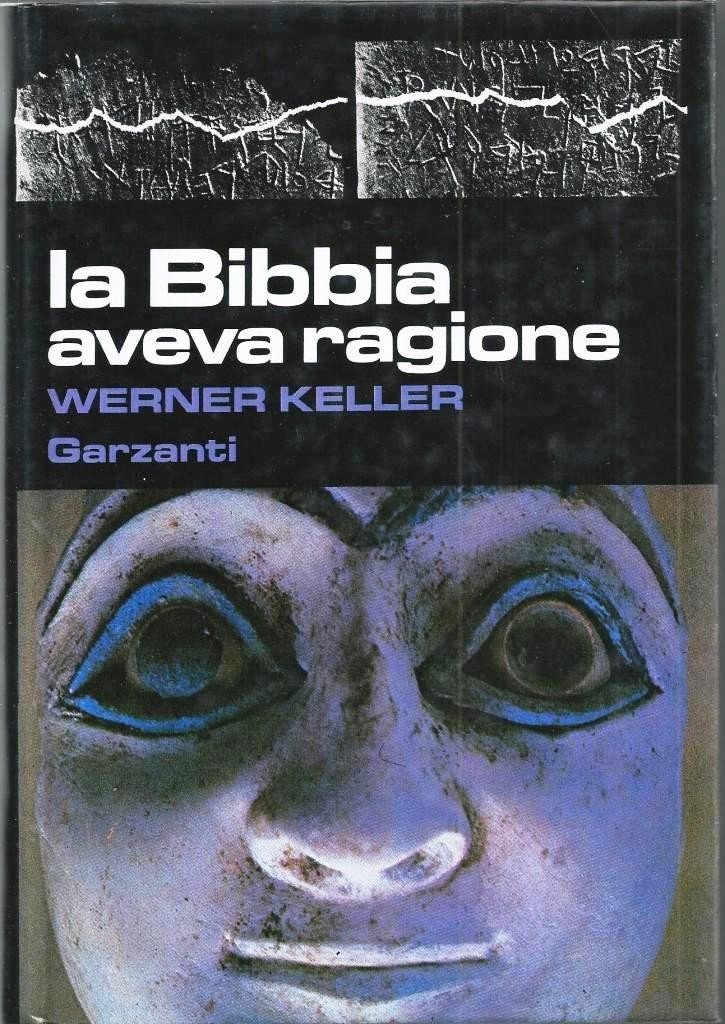 Werner Keller, La Bibbia aveva ragione, nuova ed. riveduta a cura di Joachim Rehork, Garzanti, s.l. (ma stampato a Milano) 1984, diciannovesima ed., pp. 452, ill. b.n., 20 c. di tavv. f.t. ill. b.n., 2 c. di tavv. ripiegate ill. col. con cartine geografiche, cm 23, legatura in tela ed. con titoli al dorso, ill. al piatto e sovraccoperta. Collana Storia della civiltà. Titolo originale: Und die Bibel hat doch recht. Traduzione di Guido Gentili completata e riveduta da Rolando Zorzi. Leggere tracce d’uso alla sovraccoperta, minima ingiallitura della carta, per il resto perfetto.
