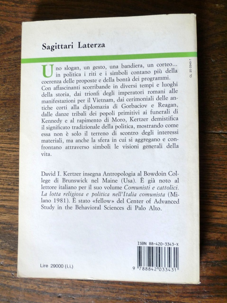 David I. Kertzer,RITI E SIMBOLI DEL POTERE.Prefazione di Gianfranco Pasquino.Editori Laterza, Roma-Bari 1989,prima edizione,brossura, 21x14 cm., pp.IX-296,SAGITTARI LATERZA / 22,ISBN: 88-420-3343-X,peso: g.450cod.9349CONDIZIONI DEL LIBRO: buone,imperfezioni alla copertina,sottolineature e note a matita,a penna in pochissime pagine