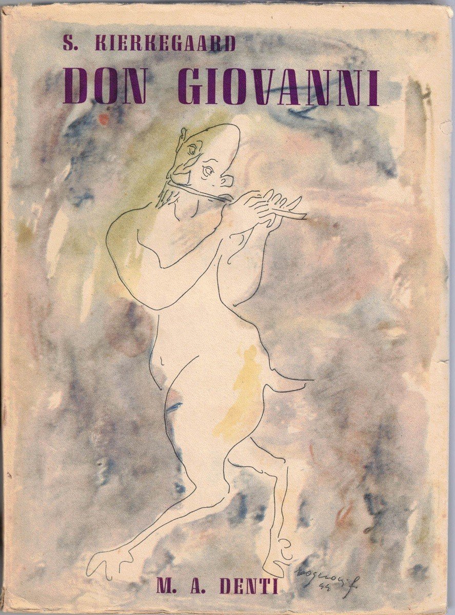 Soren Kierkegaard, Don Giovanni. La musica di Mozart e l’Eros, a cura di Remo Cantoni, M. A. Denti Editore, Milano 1945, seconda ed., pp. 155, cm 22, br. ed. con sovraccoperta. Collana Saggi, vol. 1. Titolo originale: Enten eller. Traduzione di K. M. Guldbrandsen e R. Cantoni. Tracce d’uso alla sovraccoperta, con qualche strappetto senza mancanze, una piccolissima mancanza alla prima carta di guardia, sporadiche fioriture, uniforme brunitura della carta, per il resto e nel complesso esemplare ben conservato, con brossura solida e interno ben tenuto.