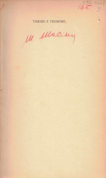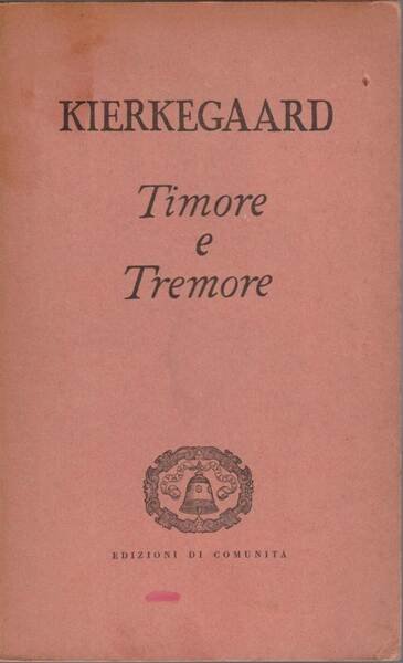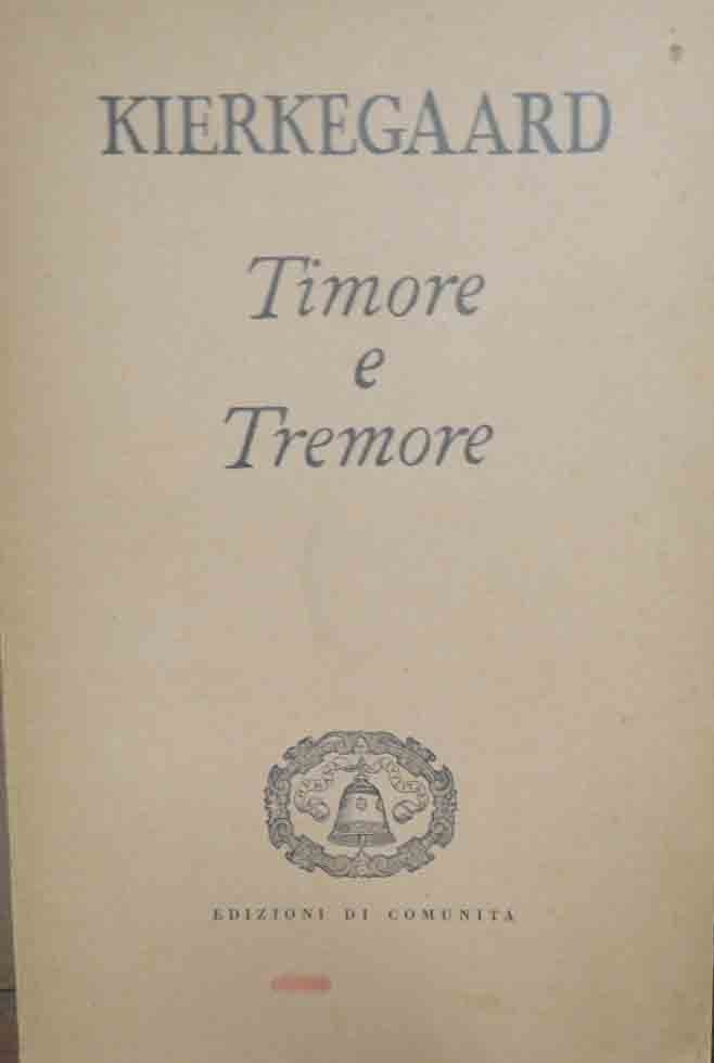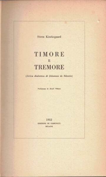 Soren Kierkegaard, Timore e tremore. Lirica dialettica di Johannes de Silenzio, prefazione di Jean Whal, Edizioni di Comunità, Milano 1952, seconda ed., pp. XXXII, 146, cm 23, br. ed. Titolo originale: Frygt og baeven. Traduzione di Franco Fortini e Kirsten Montanari Gulbrandsen. All’occhiello, firma d’appartenenza e numero progressivo di classificazione. Prima carta di guardia mancante, carta uniformemente brunita, per il resto buona copia.