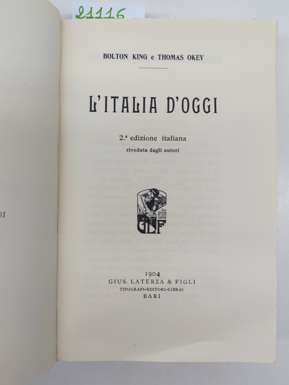 King Okey L'Italia d'oggi 2° edizione Laterza 2001 edizione anastatica del 1904