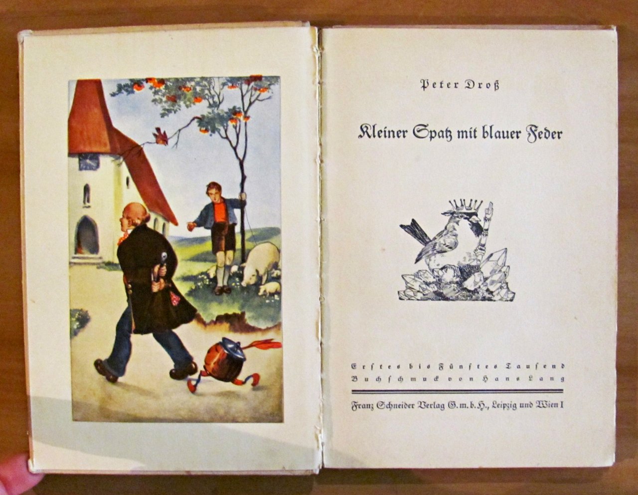 Illustrazioni in b/n n.t., anche a piena pagina, e 1 tavola a colori in antiporta di Hans Lang. Ed. Schneider Franz - Leipzig, 1934. Cartonato editoriale con dorso in tela. Lieve allentamento alla cerniera interna della sola copertina, ma libro perfettamente legato. 13x19; pp.64. RARO e in BUONISSIMO STATO , Molto buono (Very Good)